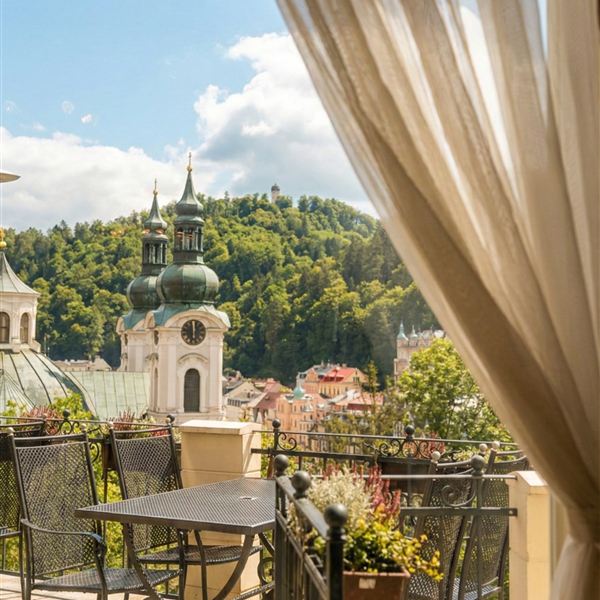 To vše v elegantním prostředí s možností posezení na terase s výhledem historické centrum a lázeňskou zónu.